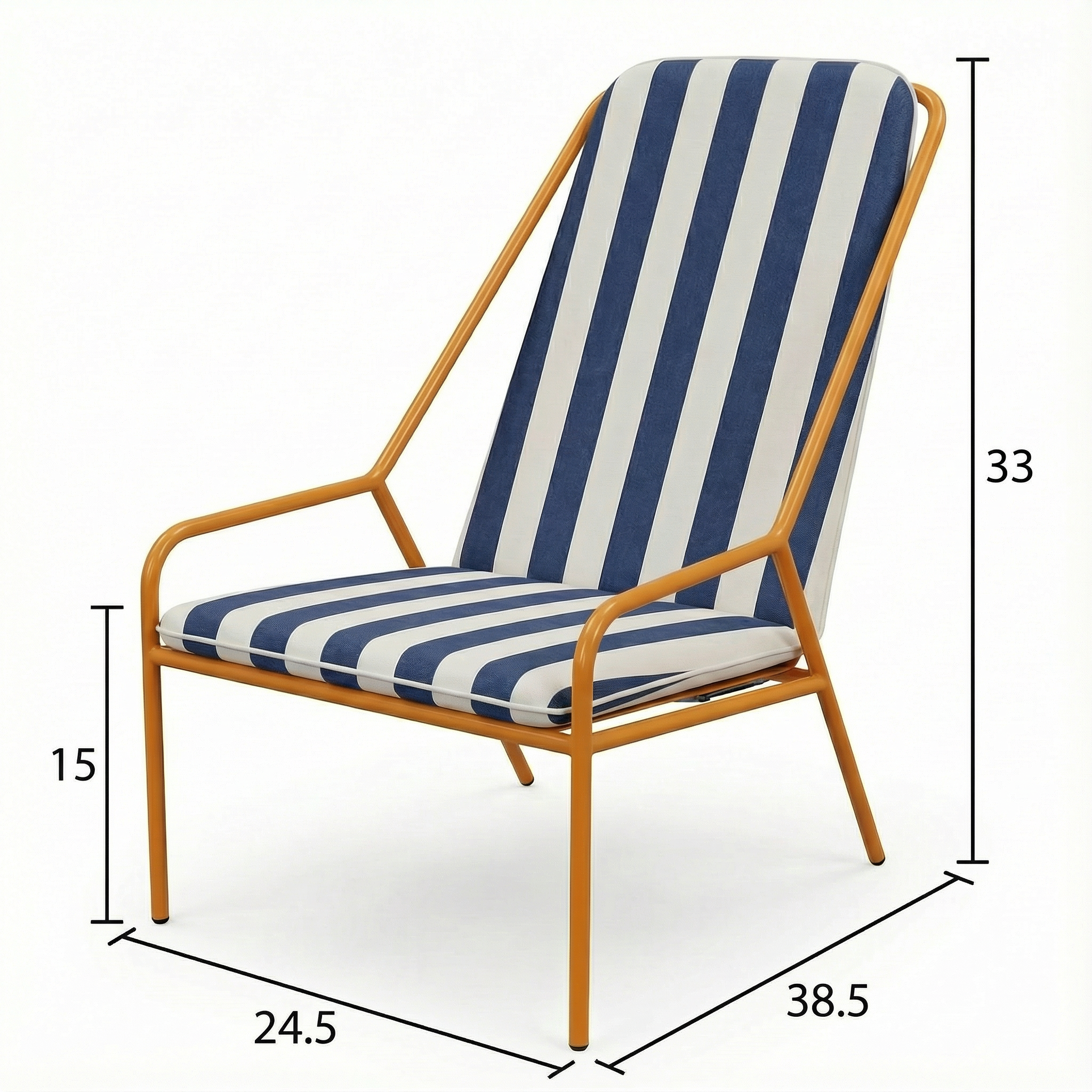 Outer Width: 24.5" Depth: 38.5" Height: 33" Seat Height: 15"
