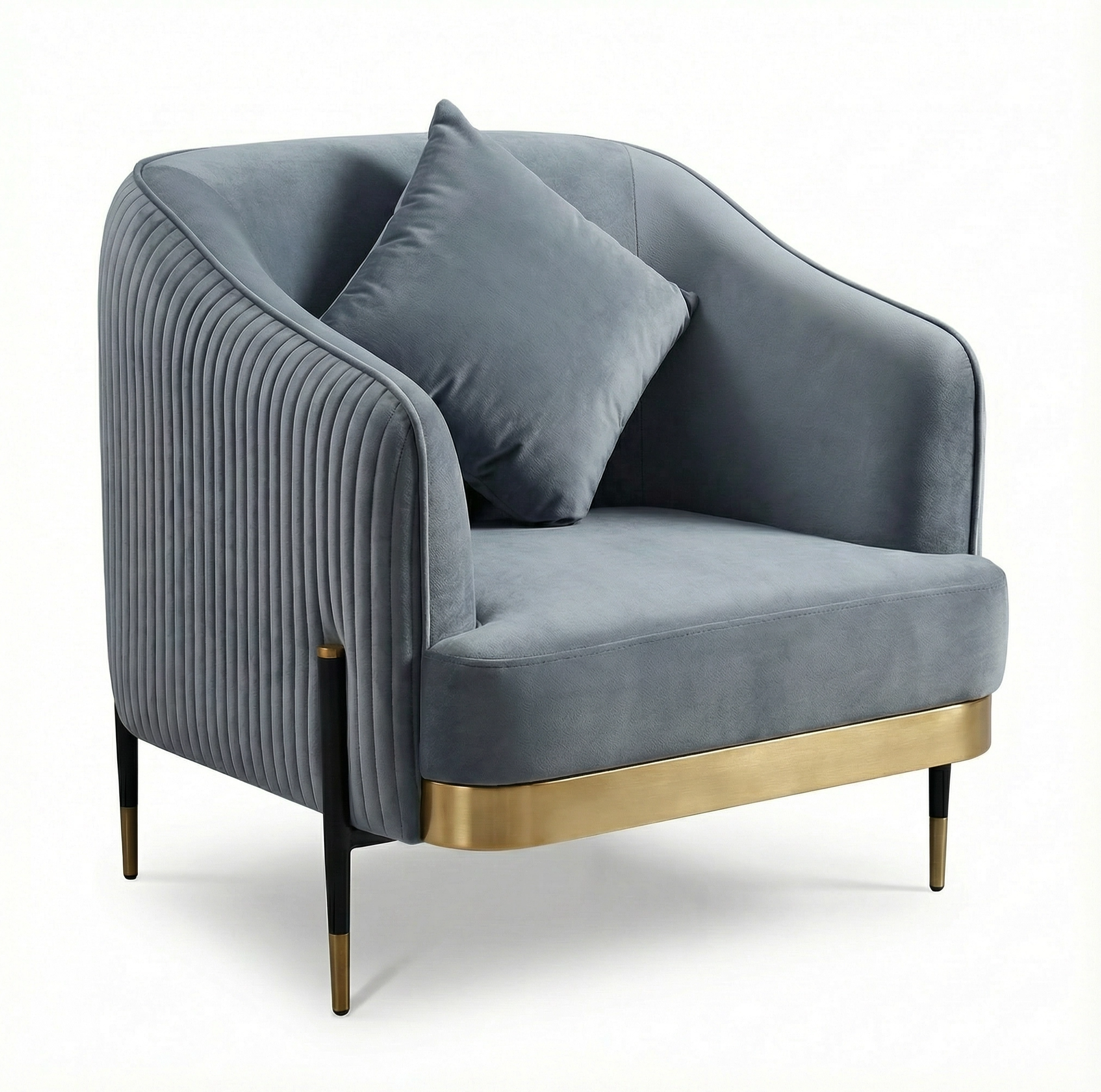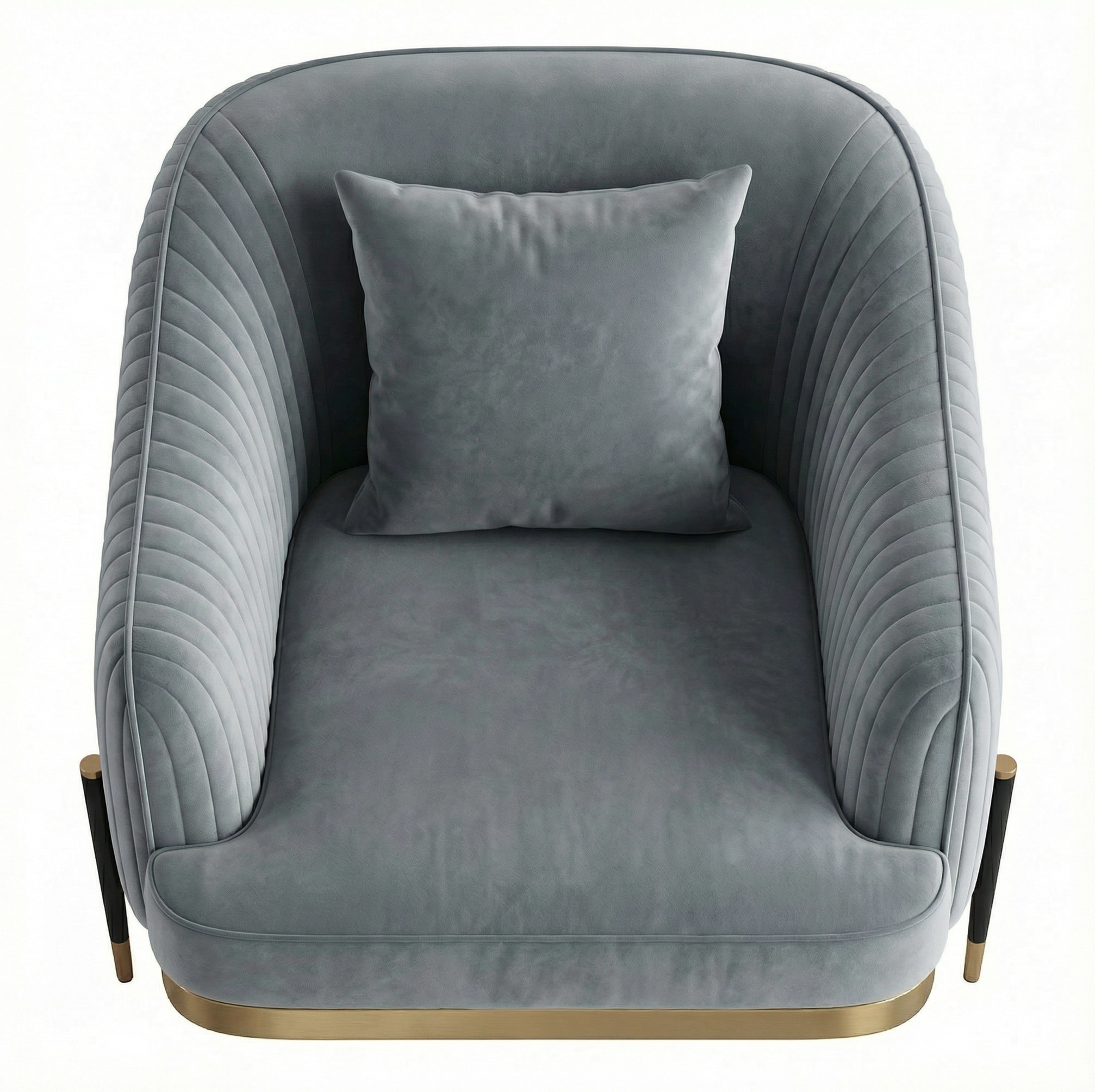 Complete your decor with a luxurious accent chair. Ready to breathe life in any room or office, Arcadia is a highly evocative example of a large, free-flowing volume suspended on a sleek metal-front frame and spherical, metal-capped legs.