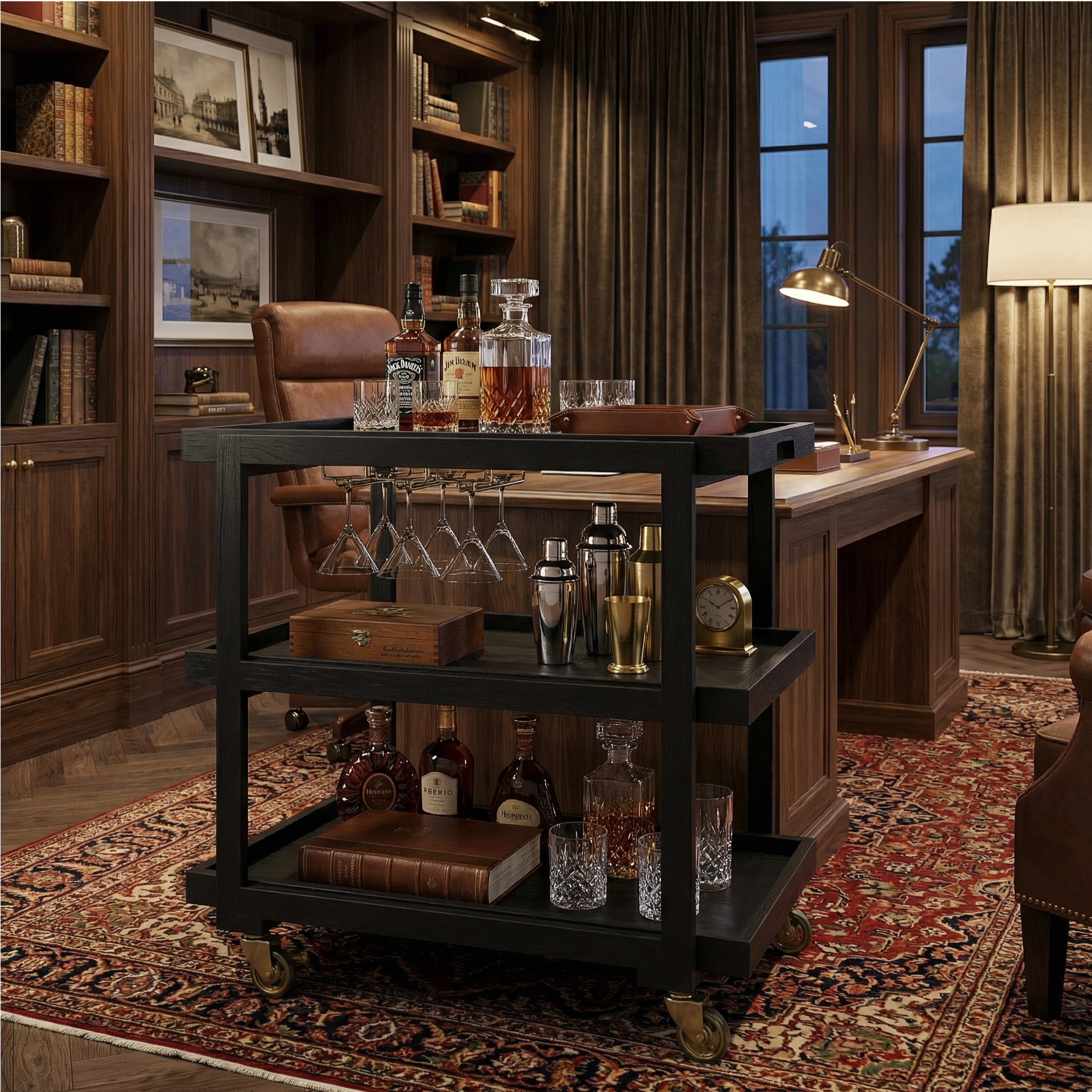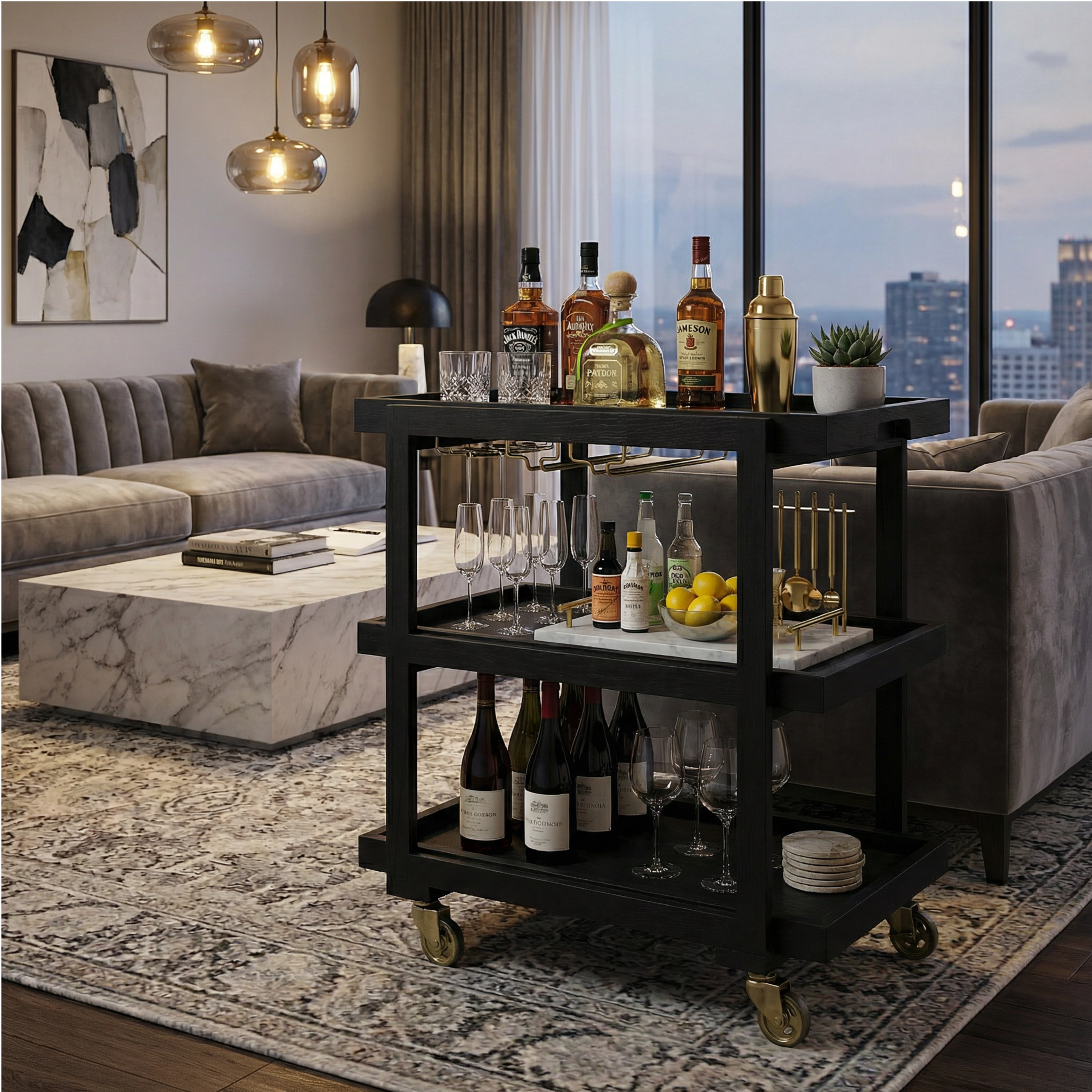 Bar cart crafted for luxurious design and functional utility.